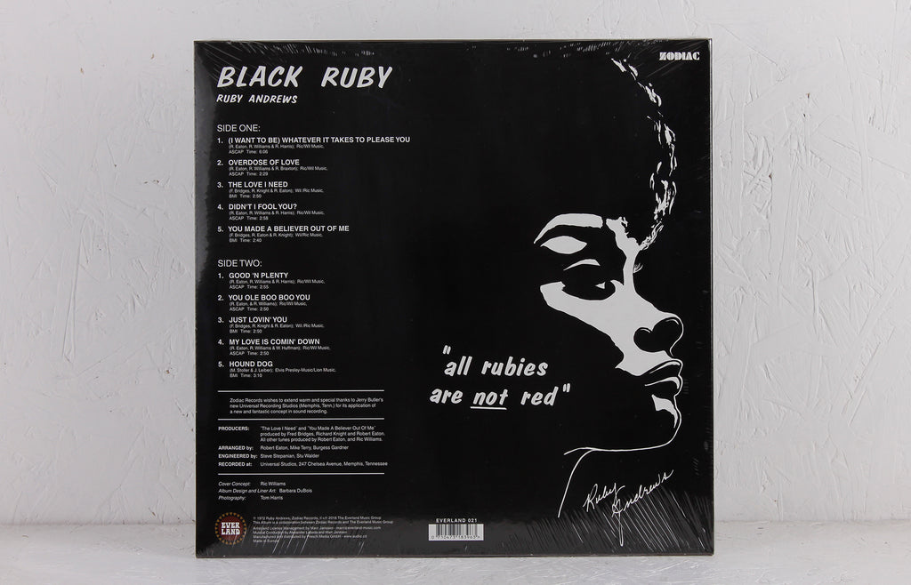 Everland re-issue of Ruby Andrews' rare soul-funk classic 'Black Ruby' from 1972.