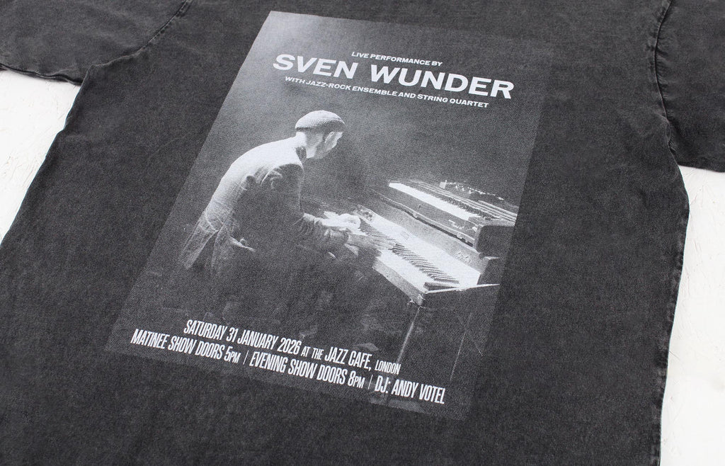 As part of Sven Wunder's recent Jazz Cafe London gig, Piano Piano made an exclusive run of t-shirts for the occasion. Produced using a premium quality, heavyweight oversized short sleeve t-shirt, it features a screenprinted front artwork with photo by Aron Pelcman.